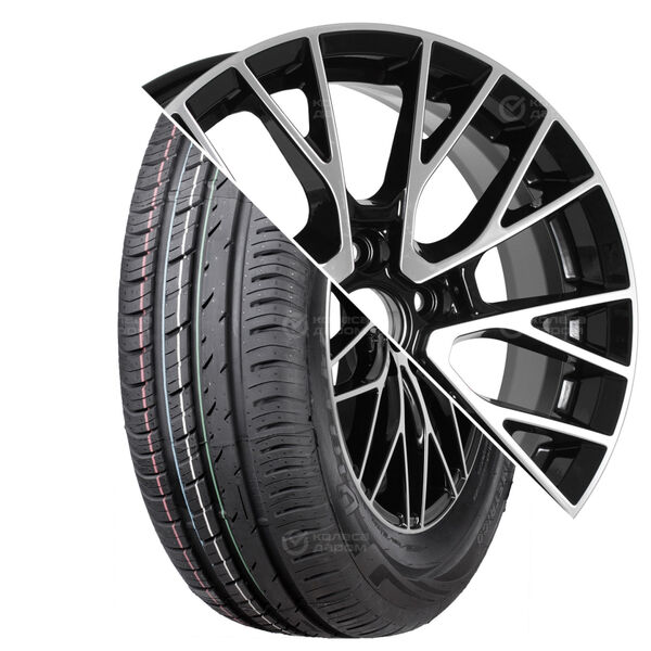 Колесо в сборе Continental Viking Contact 7 195/55 R16 91 T + КиК Серия Реплика 6×16 4×100 ET50 DIA60.1 черный глянцевый с полированными элементами лицевой поверхности