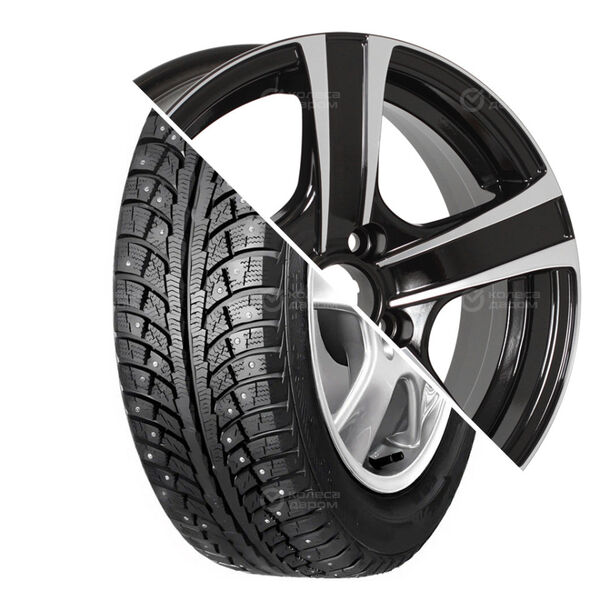 Колесо в сборе Viatti Bosco (V-238) 215/65 R16 98 H + КиК Оклахома 6.5×16 5×114.3 ET45 DIA67.1 черный глянцевый с полированными элементами лицевой поверхности