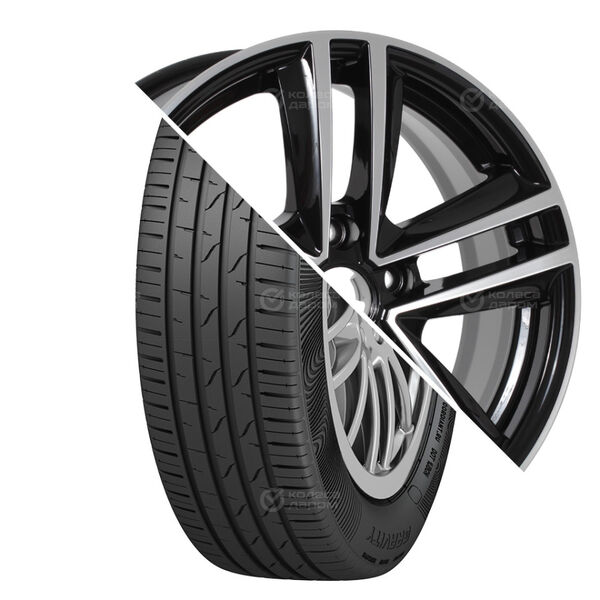 Колесо в сборе Pirelli Cinturato P1 Verde 195/65 R15 91 H + КиК Джемини 6×15 4×98 ET35 DIA67.1 черный глянцевый с полированными элементами лицевой поверхности