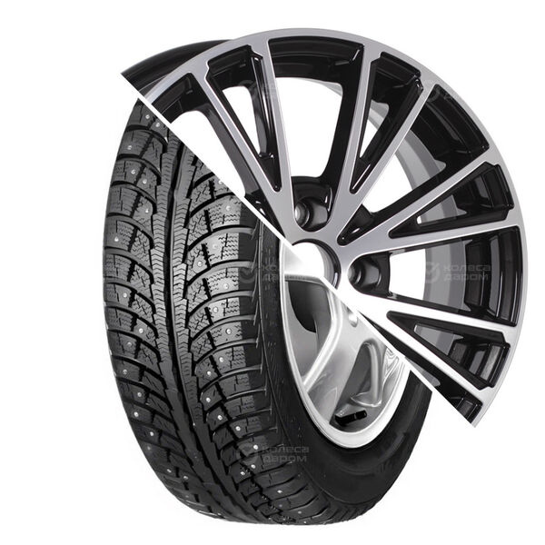 Колесо в сборе Marshal MH15 195/65 R15 91 H + СКАД Порту 6×15 4×100 ET35 DIA67.1 черный глянцевый с полированной лицевой поверхностью