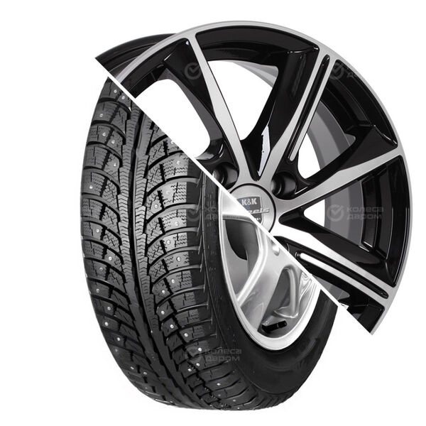 Колесо в сборе Marshal MH15 195/65 R15 91 H + КиК Джемини 6×15 4×98 ET35 DIA67.1 черный глянцевый с полированными элементами лицевой поверхности