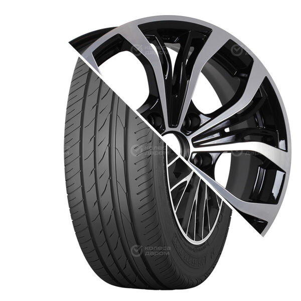 Колесо в сборе Pirelli Powergy 215/55 R17 98 Y + КиК Аламида-оригинал 7×17 5×108 ET45 DIA60.1 черный глянцевый с полированными элементами лицевой поверхности