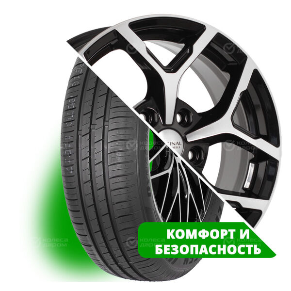 Колесо в сборе Evergreen EU72 205/55 R16 91 W + СКАД KL-368 6.5×16 5×114.3 ET45 DIA67.1 черный глянцевый с полированной лицевой поверхностью