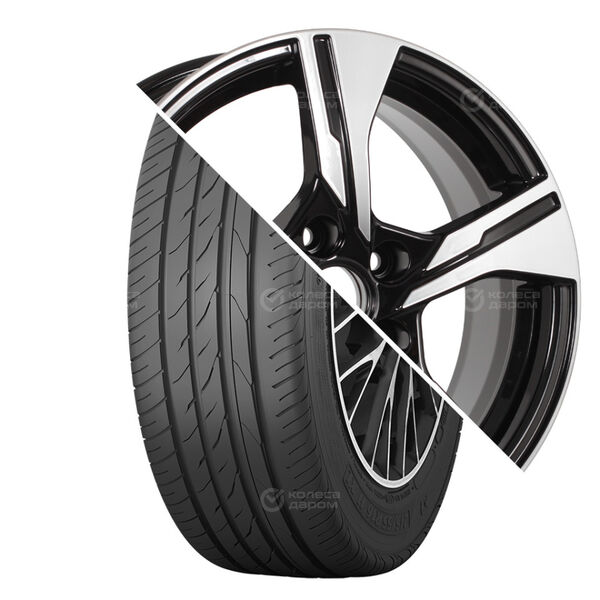 Колесо в сборе Torero MP47 205/70 R15 96 H + СКАД Киото 6×15 4×100 ET40 DIA60.1 чёрный глянцевый с полированным ободом