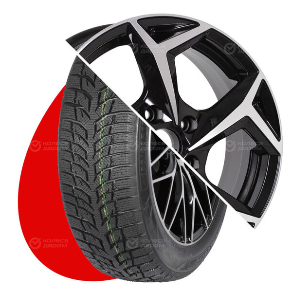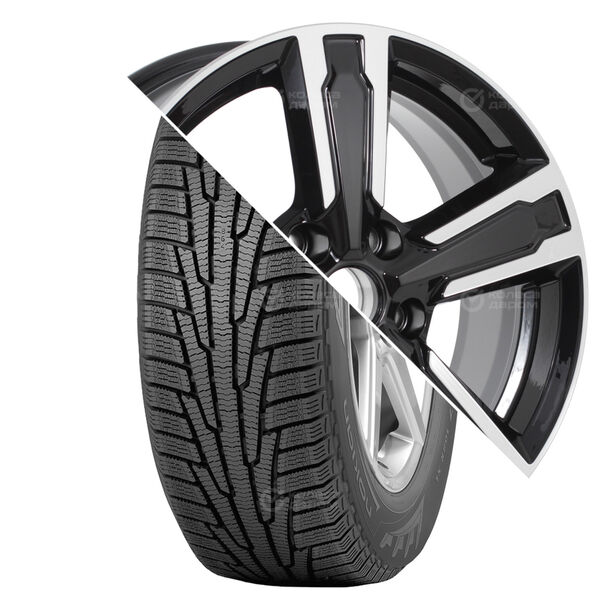 Колесо в сборе Cordiant Winter Drive 215/65 R16 102 T + КиК Серия Реплика КС704 (ZV 16 Lifan X60) 6.5×16 5×114.3 ET45 DIA60.1 черный глянцевый с полированными элементами лицевой поверхности
